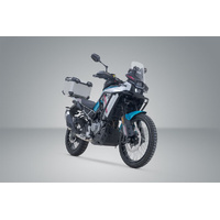 The TRAX ADV top case system consists of the robust silver top case and the matching ADVENTURE-RACK for the CFMoto 450MT.