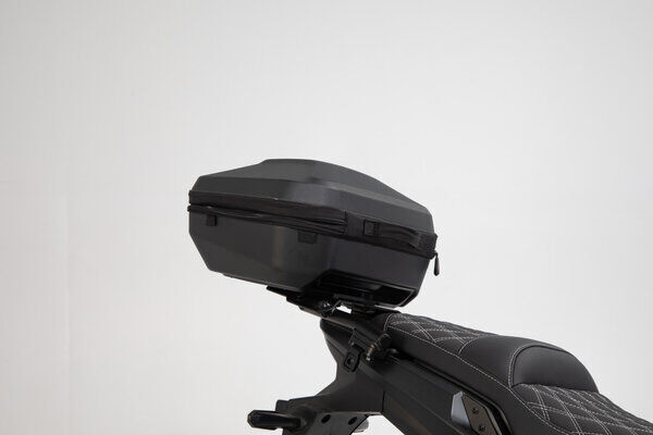 The perfect combination of top case and rack: The aerodynamic URBAN ABS top case and the sleek STREET-RACK offer a sporty solution for your luggage that is fit for everyday life at the same time.The sleek STREET-RACK, included in the set, was specifically developed for sporty motorcycles, naked bikes and smaller street bikes. SW-MOTECH finishes the STREET-RACK with powder coated aluminum and offers the right models for numerous bikes. You simply mount the rack on your bike's original attachment points.