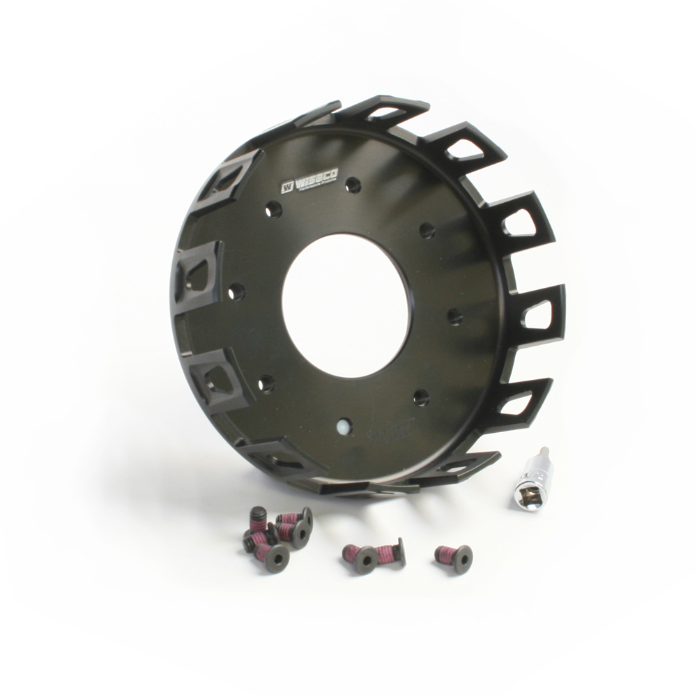 - Weight reducing relief cuts on the outside diameter of the cluch reduce rotational mass which lowers the centrifugal force acting on the clutch basket and increases overall acceleration of the engine