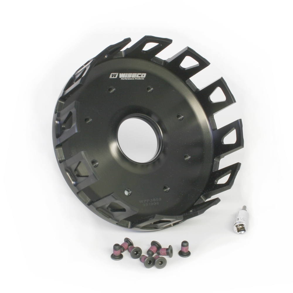 Wiseco leads the clutch aftermarket with high performance FORGED clutch baskets, inner hubs, and pressure plates. OEM clutch components are made from inexpensive die-castings that quickly wear out and become easily notched. Wiseco offers the only forged clutch components in the aftermarket for off-bike and ATV applications. The feature aligned grain flow in the aluminum adds strength and toughness to the parts that are unparalleled through other manufacturing processes.