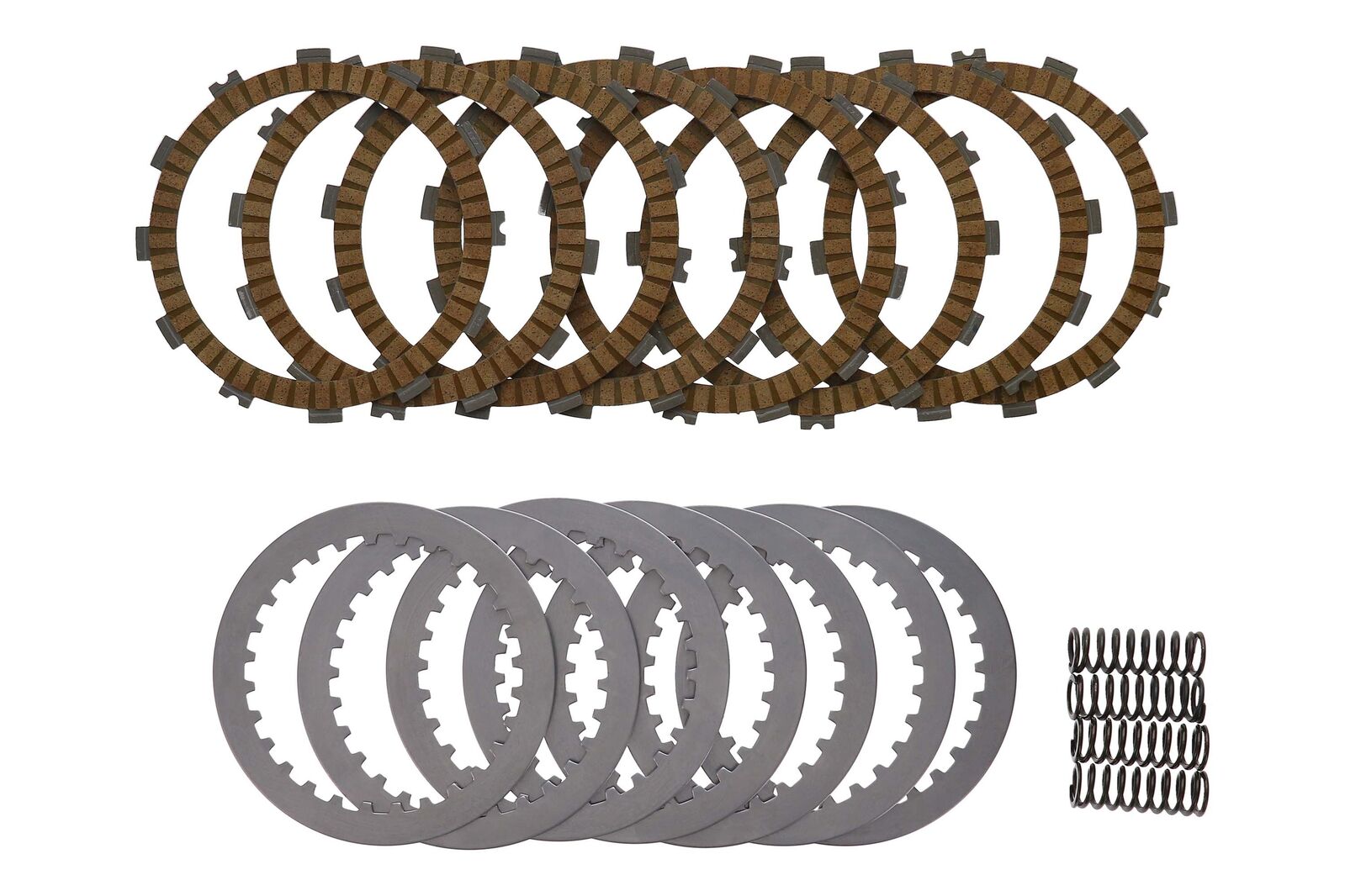 Each Kit includes new frictions, steels, and clutch springs, all made from premium grade materials. The frictions and steels are made to exact OEM tolerances and specifications, and produce the same feel and wear resistance of OEM plates.