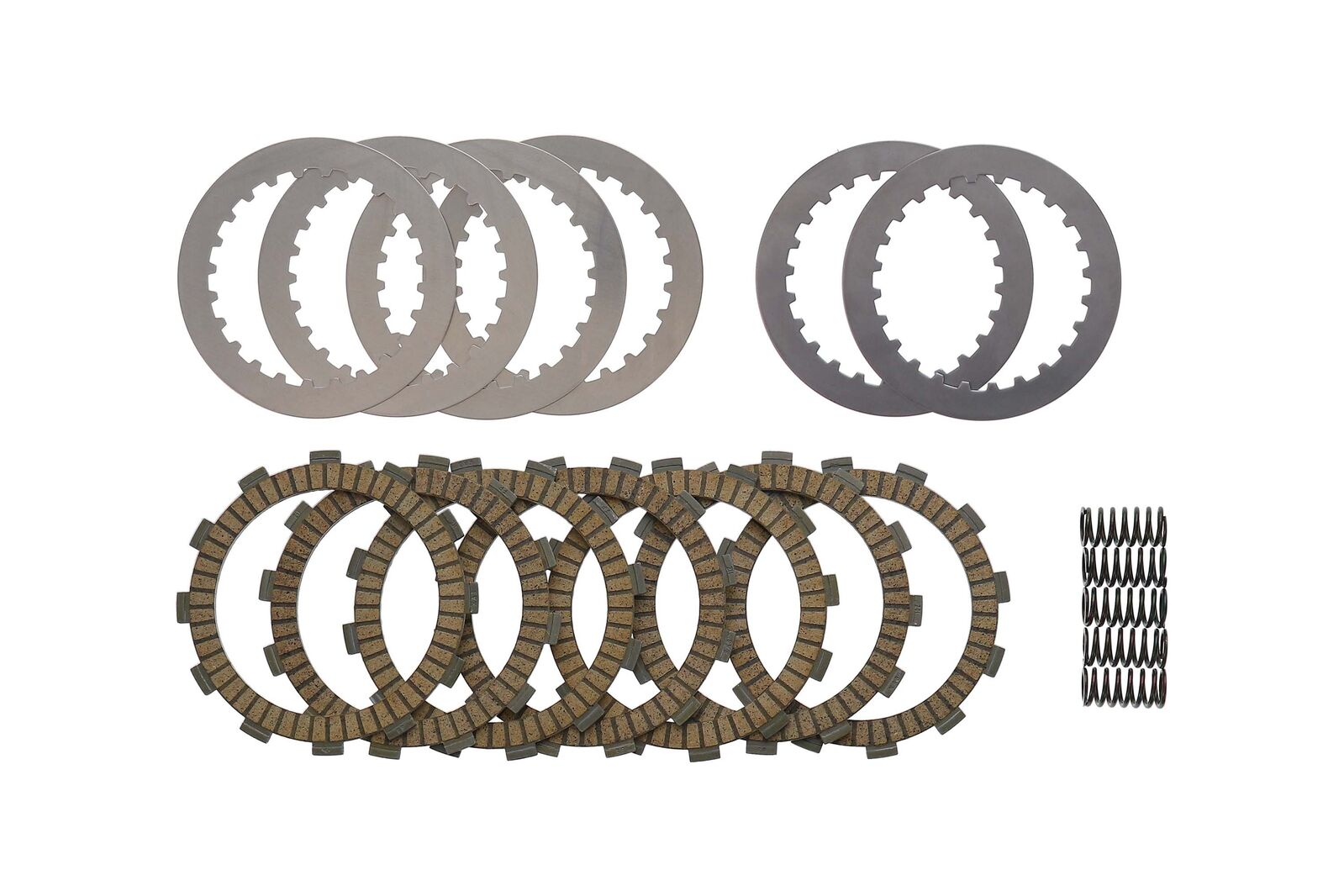 Each Kit includes new frictions, steels, and clutch springs, all made from premium grade materials. The frictions and steels are made to exact OEM tolerances and specifications, and produce the same feel and wear resistance of OEM plates.