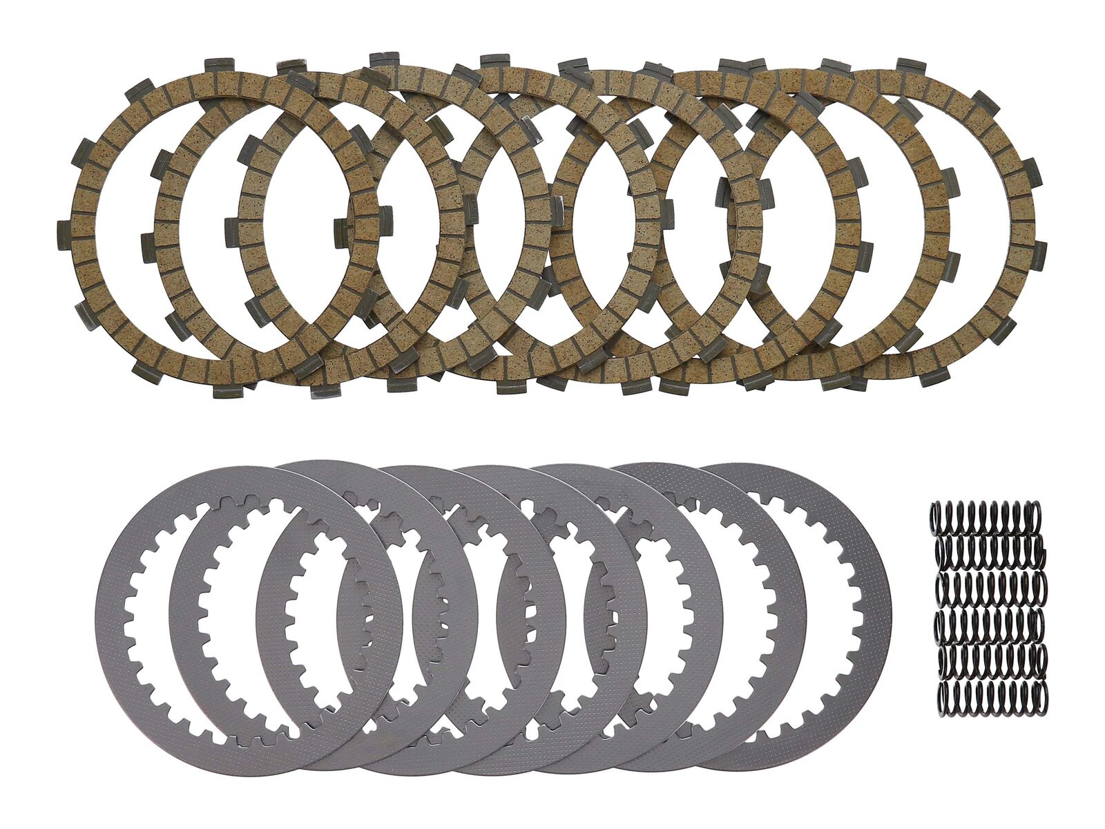 Each Kit includes new frictions, steels, and clutch springs, all made from premium grade materials. The frictions and steels are made to exact OEM tolerances and specifications, and produce the same feel and wear resistance of OEM plates.