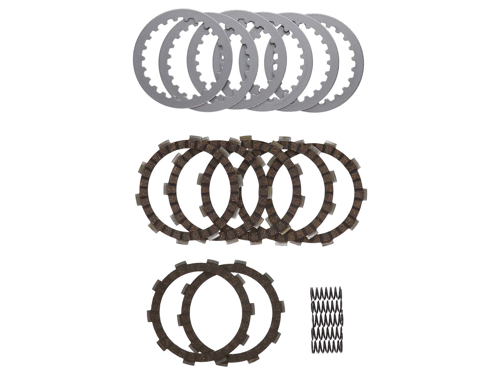 Each Kit includes new frictions, steels, and clutch springs, all made from premium grade materials. The frictions and steels are made to exact OEM tolerances and specifications, and produce the same feel and wear resistance of OEM plates.