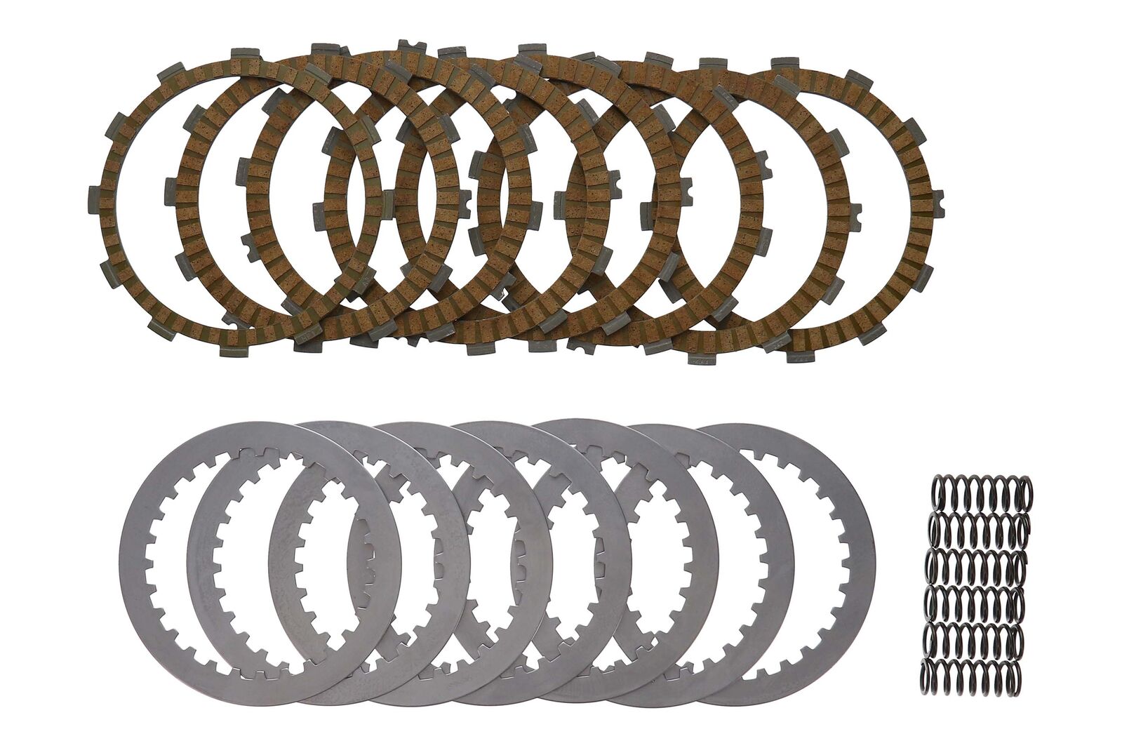 Each Kit includes new frictions, steels, and clutch springs, all made from premium grade materials. The frictions and steels are made to exact OEM tolerances and specifications, and produce the same feel and wear resistance of OEM plates.