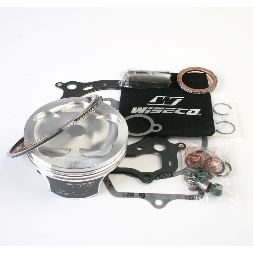 Feature forged pistons, rings, wrist pins, circlips and top end gasket set.