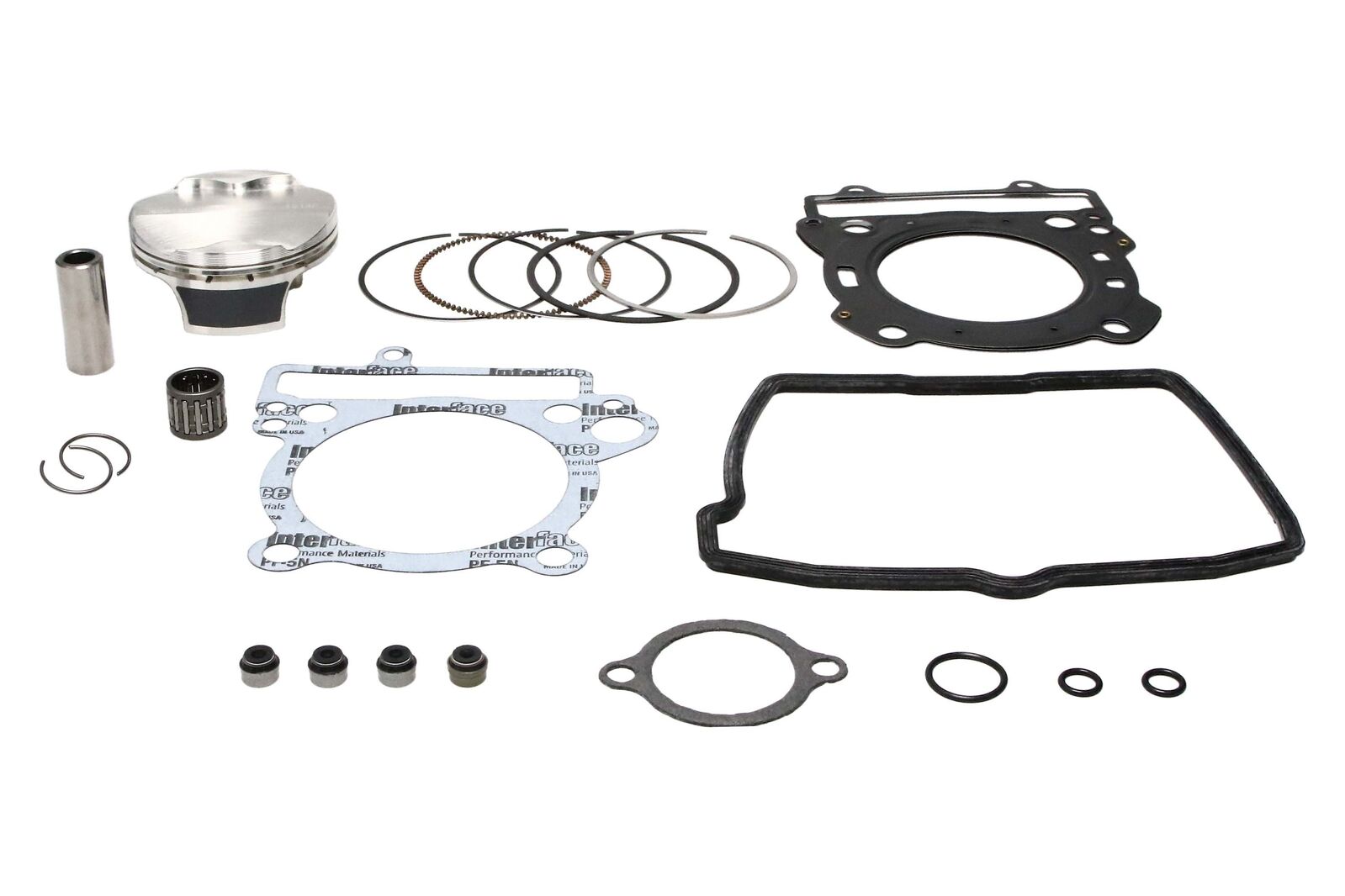 Feature forged pistons, rings, wrist pins, circlips and top end gasket set.