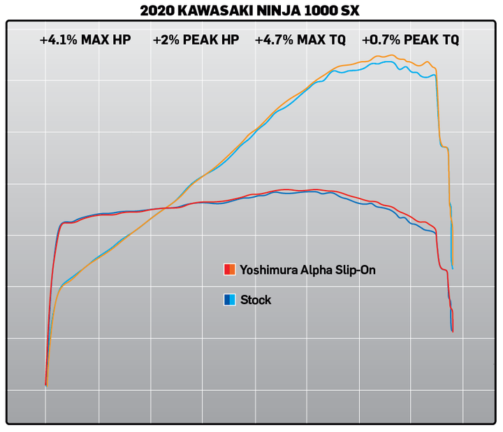 With a solid base 1043cc inline 4 cylinder engine, this new Ninja is radically smooth! One of the areas we focused on was to give the Ninja more giddy up on top and our Alpha slip- on delivered! With an increase of 4% max horsepower and 4.7% max torque, it's safe to say the Kawasaki Ninja 1000 SX is even more fun to ride.
