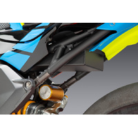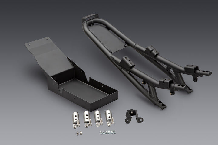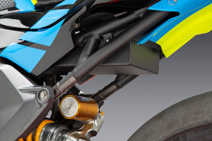 - Accommodates needed clearance for remote reservoir shock with Yoshimura Linkage Kit