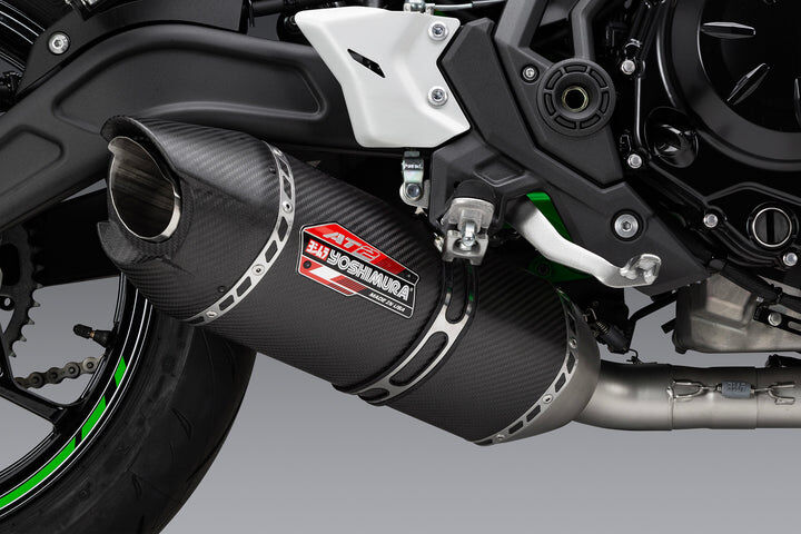 Yoshimura AT2 Stainless Full Exhaust / Carbon Muffler for 2017-2025 Kawasaki EX650R Ninja 650R