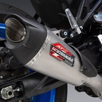 The R&D team dug deep on this one. Our AT2 Race Series Works Finish full system with carbon fibre heel guard was developed to optimize the power on the new 776cc, 270-degree engine, and the results were astounding! Adding a Max HP of 5.7%, and a torque gain of 6.1 percent, this is a different motorcycle now! On top of great results on the dyno, the weight saving of over 7 pounds is very substantial, and there's no mistaking the sound of a Yoshimura system delivering a sonic tone that does not disappoint!