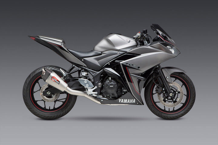 Yamaha R3 is known for its lightweight 320cc parallel twin engine and is a favorite of club racers worldwide. Yoshimura answers the call with our new AT2 Race Series Works Finish full system. The AT2 incorporates our exclusive Works Finish an aggressively styled matte finish carbon fiber end cap complimented by a facet-formed formed tip.