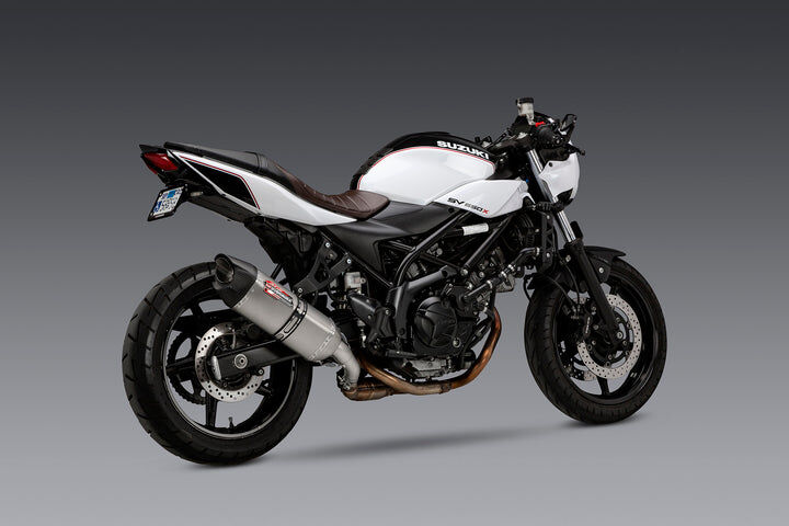 Yoshimura R&D engineers developed the already iconic AT2 slip-on for the current gen SV. Not only does it deliver styling and weight reduction, it also delivers some serious performance. Max horsepower is up 3% and max torque was logged at 3%. That's the kind of performance that makes the SV650 even more fun to ride. The race inspired AT2 Street Series slip-on is exactly what your SV650 has been craving.