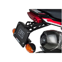 • Model specific precision laser-cut stainless steel bracket tucks discreetly under the tail section of the motorcycle
