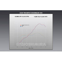 Our GP Magnum slip-on looks just perfect on the Scrambler 400. A weight savings of as much as 3 Lbs. is one thing, but the performance is another with a 2.08% increase of HP at 8000 rpm and a 3.8% increase in torque @ 6,300 rpm just nails it.