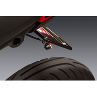 Optional Universal Micro LED Turn Signal Bracket made from laser cut stainless steel then powder coated for a durable finish, that mounts to the license plate on most bikes. Made in the USA.