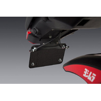 Optional Universal Micro LED Turn Signal Bracket made from laser cut stainless steel then powder coated for a durable finish, that mounts to the license plate on most bikes. Made in the USA.