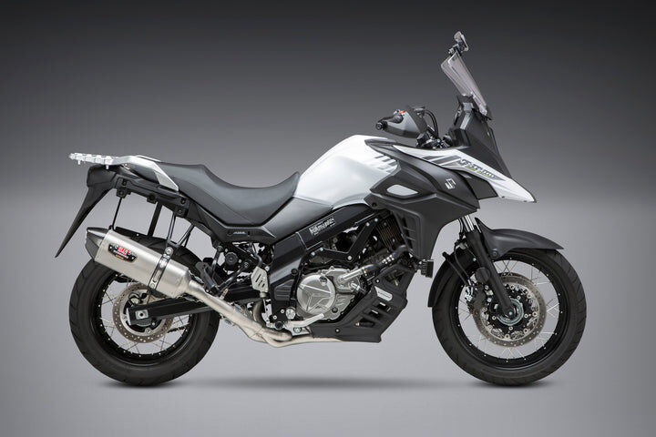 Yoshimura now makes that fun go further with a Race Series 3/4 system made with nothing more than performance in mind. We developed an R-77 muffler, a potent power producer that puts out power and an incredible exhaust note. Then we added our Works Finish to complete the look on the V-Strom. The results were what you might expect from the leader in performance. A weight savings of 7 pounds from the stock unit and a HP gain of 5%max and a torque curve that adds 6% max to the Suzuki Adventure machine. Let the adventure begin!