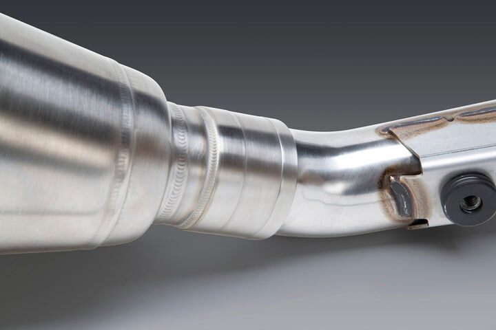 - Tapered muffler body inlet design of RS-12 enables the system to be pushed forward thus helping with weight centralization without sacrificing performance