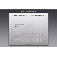 The latest KX250F boasts a new chassis and engine package. That meant it was time to go to work to see what can be done to add performance to the new KX. During development the new 250 was very responsive to our RS-12. We were able to add up to 3.3% more HP at 11,000 rpm and up to 3.4% more torque at 10,600 rpm. This gives the 2025 KX250F added power on top and more connectivity on the bottom and mid point of the power spectrum.