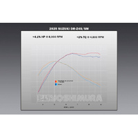 If a Race Series full system is not what you're looking for, we developed our RS-12 slip-on to pack performance on the DR-Z4S without compromising 50 state legality. The RS-12 Enduro Series slip-on provides great performance 4.1% in hp @8,000rpm and 2% increase of torque @4,800rpm with spark arrestor installed. This slip-on includes our installed USFS approved spark arrestor, SA-19-K, to make is easier to roll right out to your favorite off-road riding area. A custom stainless Yoshimura heat shield is included.