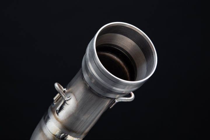- Tapered muffler body inlet design of RS-12 enables the system to be pushed forward thus helping with weight centralization without sacrificing performance