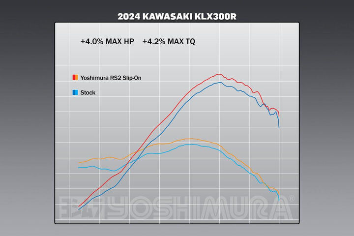 We paired our RS-2 muffler with the Kawasaki 300R as it's the perfect match for this mid-size trail bike. Now with our RS-2 slip-on the 300R produces power and torque for the ultimate trail and enduro experience. Power increase of 4% max HP and 4.2% max torque.