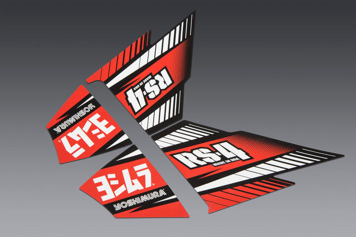 Time to update the look of your RS-4 muffler? We have you covered with this new 4pc set. The body decal is made from a high-temp aluminum backing, while the end cap decal is made with 12 mil vinyl.