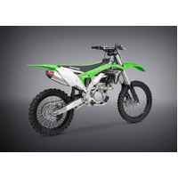 The work that went into developing the RS-4 muffler has paid big dividends in Off-road Racing; winning multiple Supercross and Motocross titles since it's inception. We've developed the current generation RS-4 based on that research & development, and the result is a unique design that provides an unrivaled combination of power and quiet exhaust tone. The RS-4 features a Polyresonant duplex chamber and two-staged stepped baffle for increased performance, while a carbon cone end cap finishes off its innovative styling.