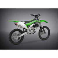 The work that went into developing the RS-4 muffler has paid big dividends in Off-road Racing; winning multiple Supercross and Motocross titles since it's inception. We've developed the current generation RS-4 based on that research & development, and the result is a unique design that provides an unrivaled combination of power and quiet exhaust tone. The RS-4 features a Polyresonant duplex chamber and two-staged stepped baffle for increased performance, while a carbon cone end cap finishes off its innovative styling.