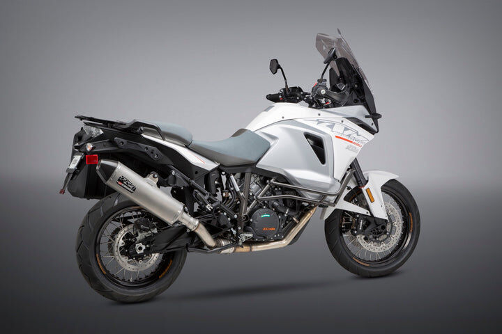 For those that want to compliment these three KTM machines, Yoshimura has developed an RS-4 slip-on that delivers in every area that an adventure rider would desires - power, sound and looks. The power that the RS-4 provides is second to none, delivering a 3.1% max gain in horsepower and a 2.7% max gain in torque. The sound the RS-4 provides is throatier, and with over a 5 lbs. weight loss, acceleration and throttle response has been improved dramatically. Finished off with Yoshimura's own Works Finish and you have a winner!