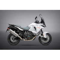 For those that want to compliment these three KTM machines, Yoshimura has developed an RS-4 slip-on that delivers in every area that an adventure rider would desires - power, sound and looks. The power that the RS-4 provides is second to none, delivering a 3.1% max gain in horsepower and a 2.7% max gain in torque. The sound the RS-4 provides is throatier, and with over a 5 lbs. weight loss, acceleration and throttle response has been improved dramatically. Finished off with Yoshimura's own Works Finish and you have a winner!