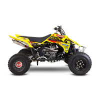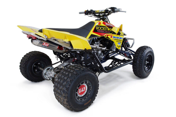The deep, pleasing sound of the RS-5 is due to its four-sided trapezoidal muffler shape. The unique shape is aggressive looking and detailed, and it accentuates the lines of the Suzuki LT-R450 like no other pipe. But there's more to this pipe than mere good looks. The high-flow, straight-through baffle design allows for maximum performance, while the stainless steel internals add durability and strength.