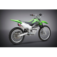 Kawasaki recently revamped the KLX-140 line up of trail bikes, and now Yoshimura has a full system for all three wheel sizes of the mean green trail machine 140, 140L and 140G. This new RS-9 Enduro Series full system not only increases the power, and torque, it reduces weight over the stock system. Unmistakable is the one of a kind look of the RS-9, add to that the legendary Yoshimura exhaust note and it's over!