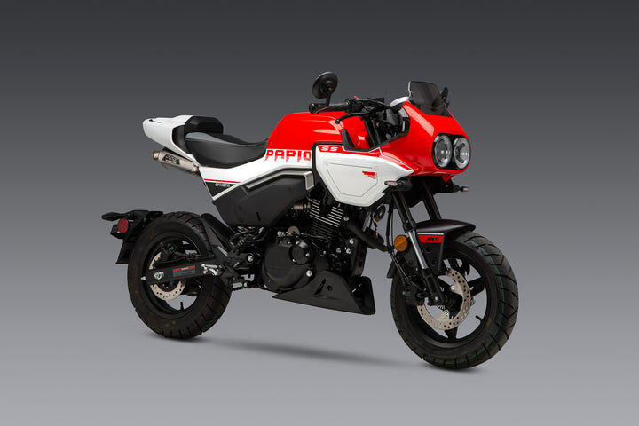 Our RS-9 Street Series Slip-on was a perfect match for the Papio SS styling cues and fits perfectly under the tail section of the little machine. Performance was a hit as well, the Papio SS responded very well adding 4.0 % max hp and 4.0 % max torque the the 126cc engine. On the street you can really feel the difference and the sound note from the RS-9 is nothing short of legendary. Ditching the stock muffler will save you almost two pounds as well. Now the new Papio SS is even more fun!