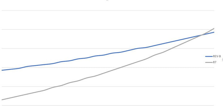 Our suspension link system works by modifying the linkage ratio and progression with a higher ratio and adds more linear progression. This setup is designed to work well with the stock OEM R7 front end.