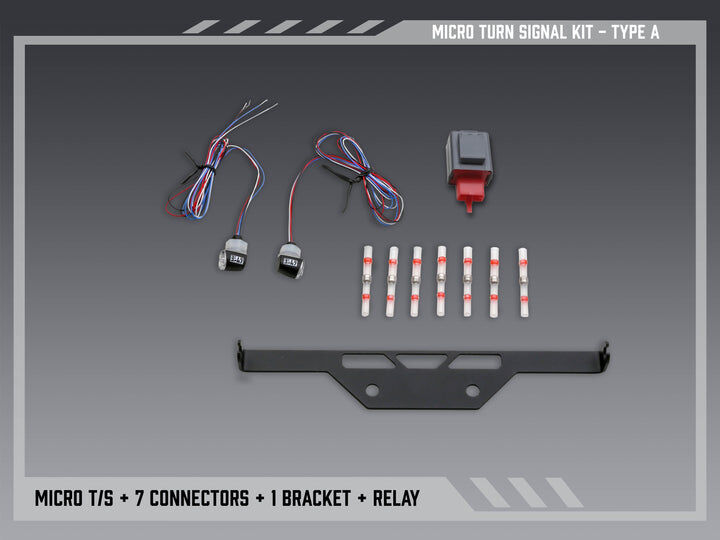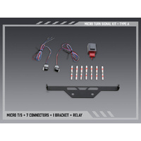 The micro signal that packs a punch available in a kit for our V2 FE Kits. Included in the kit are a set of our ultra-bright Micro Signals that have ultra bright brake, turn signal, and running lights integrated into a compact design. Also included is our custom powder coated mounting bracket to fit the light up to our V2 Fender eliminator kit.