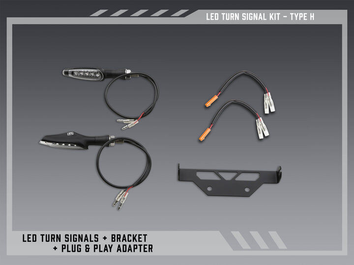Our widely popular LED signal combined with OEM plug wiring adaptors also comes with an intelligently designed, powder coated, stainless steel mounting bracket for the Yoshimura V2 Fender Eliminator Kit. All necessary components for true plug-and-play function are also included if your bike model requires it.