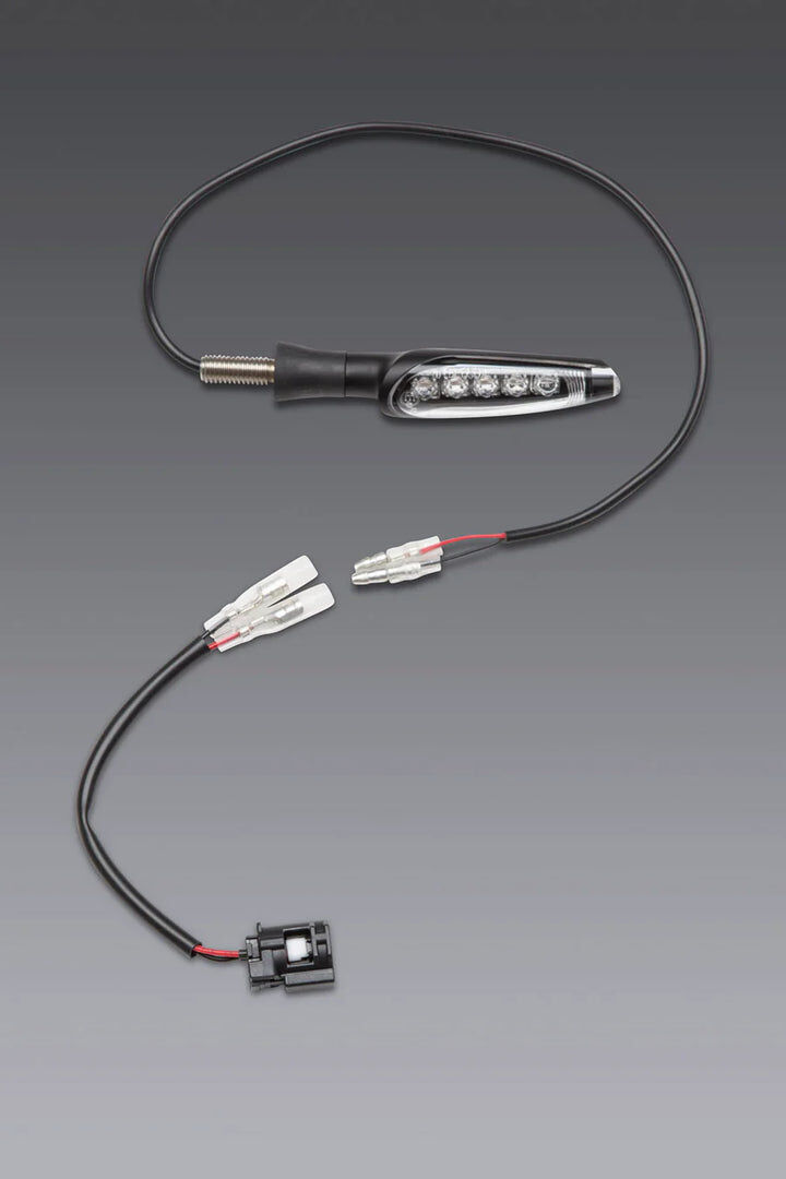 Sequential lights offer movement so other riders and drivers can possibly see you better. Our Sequential Signal kit for V2 FE kits include Yoshimura signals, with OEM plug wiring adapters and an intelligently designed, powder coated, stainless steel mounting bracket. All necessary components for true plug-and-play function are also included if your bike model requires it.