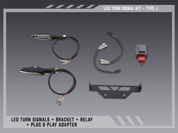 Our widely popular LED signal combined with OEM plug wiring adaptors also comes with an intelligently designed, powder coated, stainless steel mounting bracket for the Yoshimura V2 Fender Eliminator Kit. All necessary components for true plug-and-play function are also included if your bike model requires it.